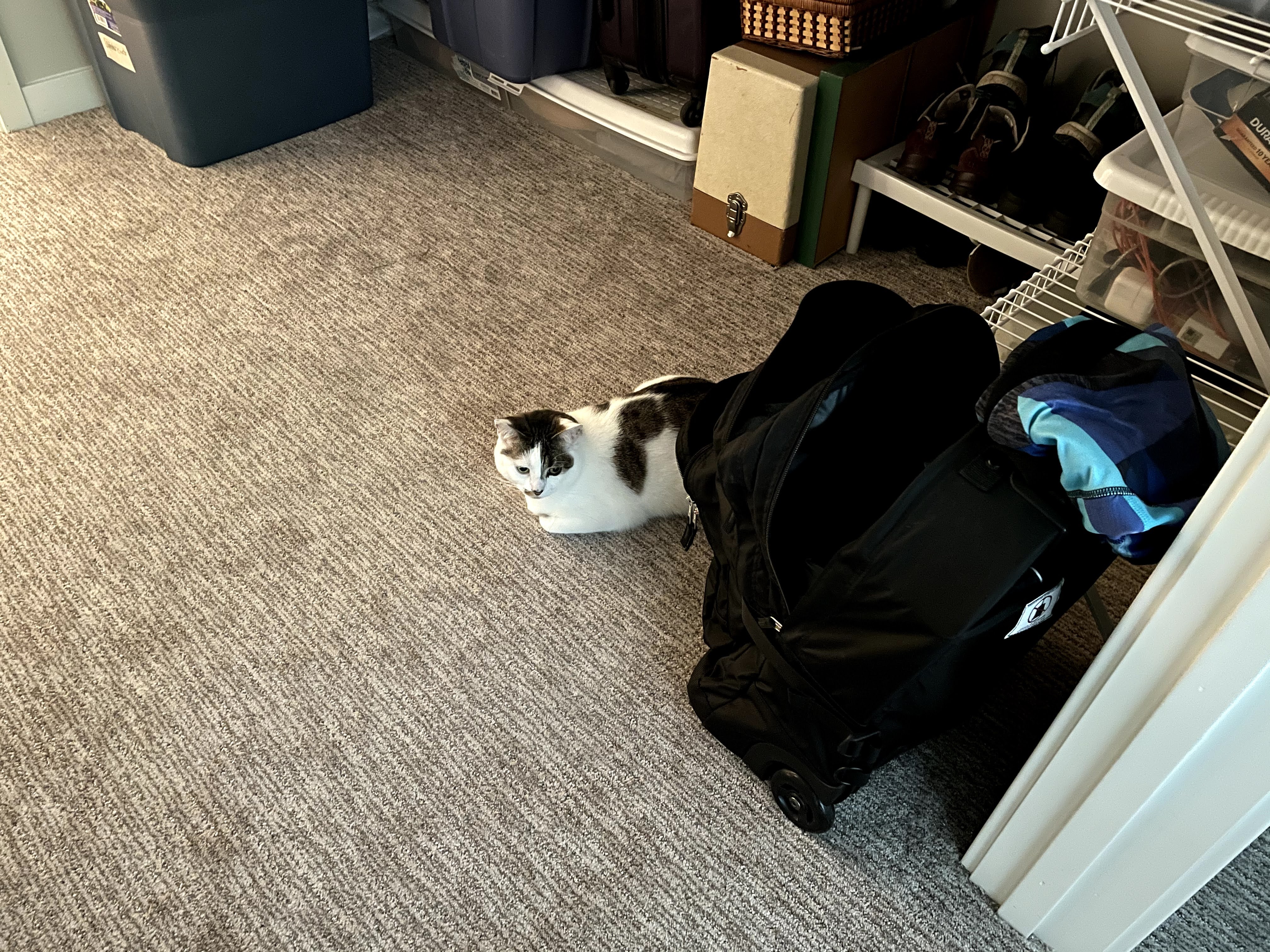 Ari has, of course, sensed the preparations, especially the past few days and is now routinely hiding under the bed or in the closet in this case. As my excitement grows, she seems more and more skeptical that this is really in her best interest. Even taking her on car rides to get her used to it, hasn’t seemed to help. The fact that her carrier sits near the front door is a clear sign to her that nothing good is going to happen despite the fact that I reassure her daily.